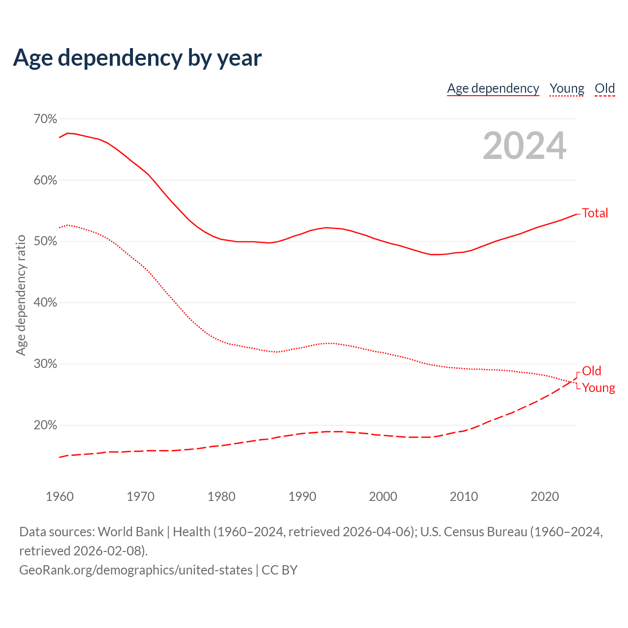 - U.S. Census Bureau (1960–2025, retrieved 2026-02-08)