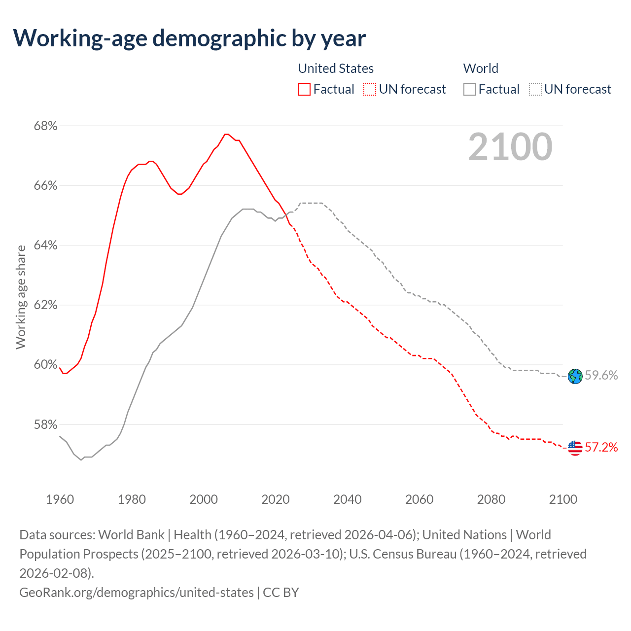 - United Nations | World Population Prospects (1950–2100, retrieved 2026-03-10)