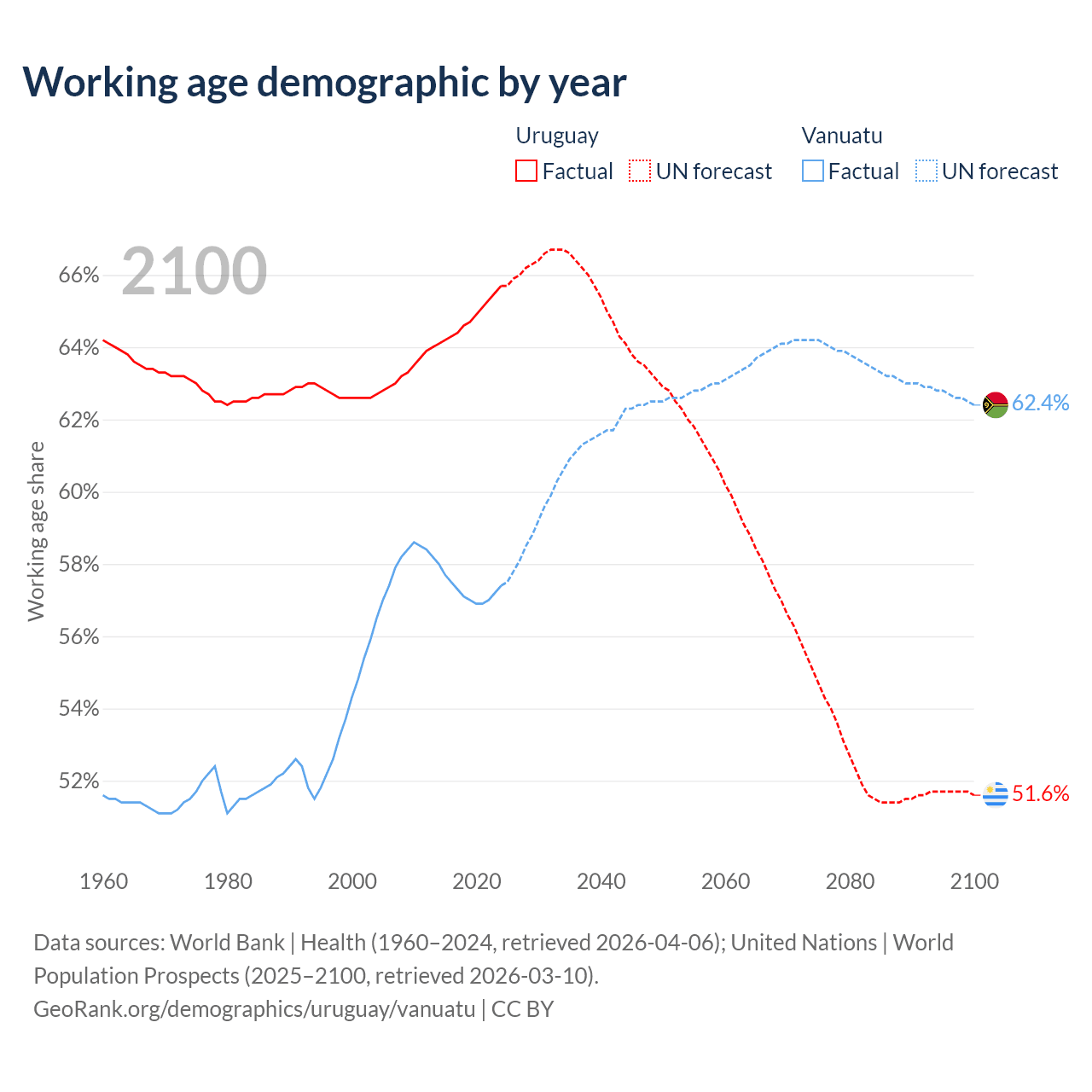 - Uruguay has 2.22M working age adults (aged 15-64) vs 198K in Vanuatu.