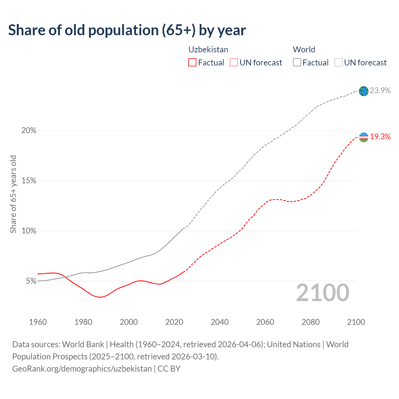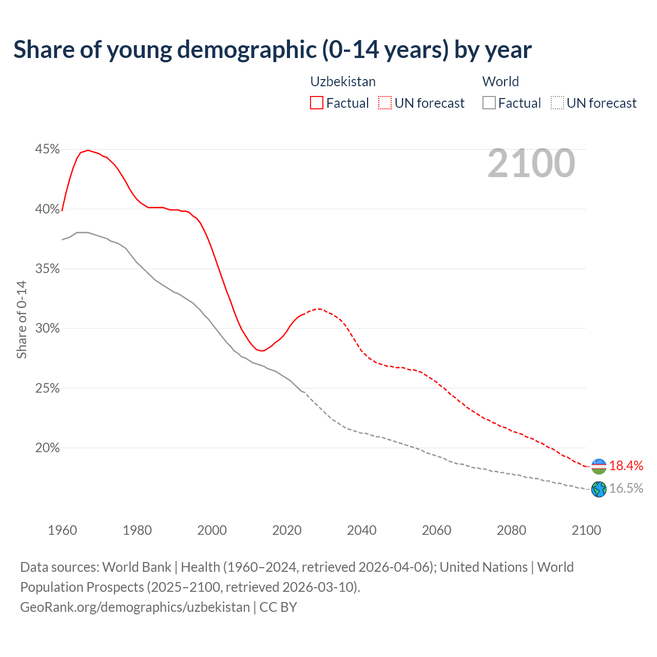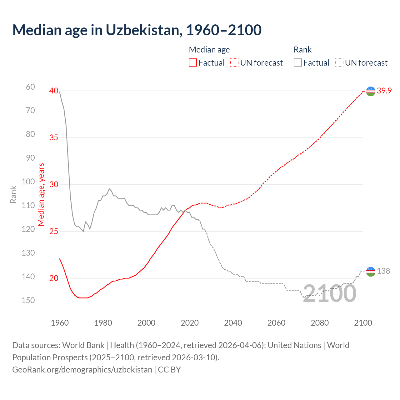 Median age in Uzbekistan, 1960–2100