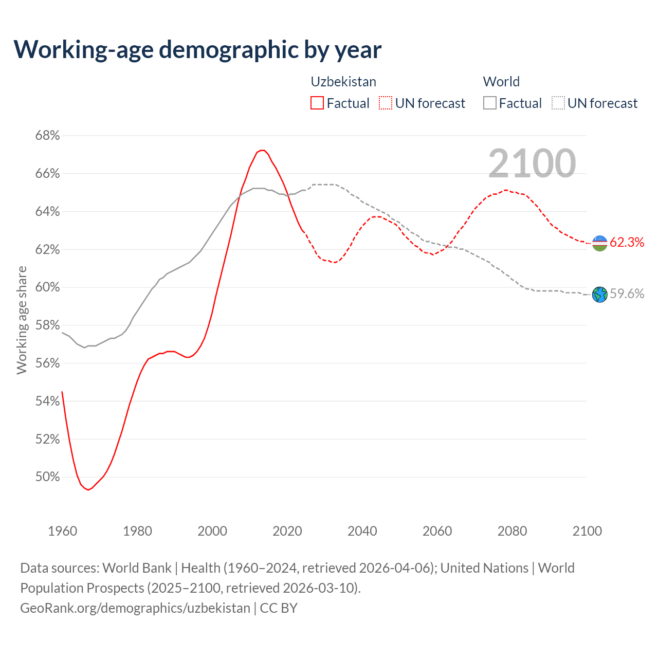 - World Bank | Health (1960–2024, retrieved 2026-04-06)
