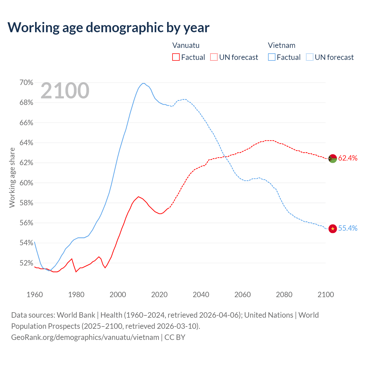- Vanuatu has 198K working age adults (aged 15-64) vs 69.3M in Vietnam.