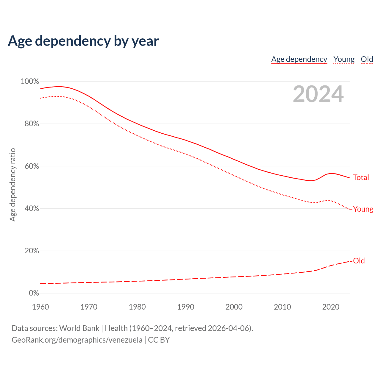 Data sources: World Bank | Health (1960–2024, retrieved 2026-04-06); U.S. Census Bureau (1960–2024, retrieved 2026-02-08).