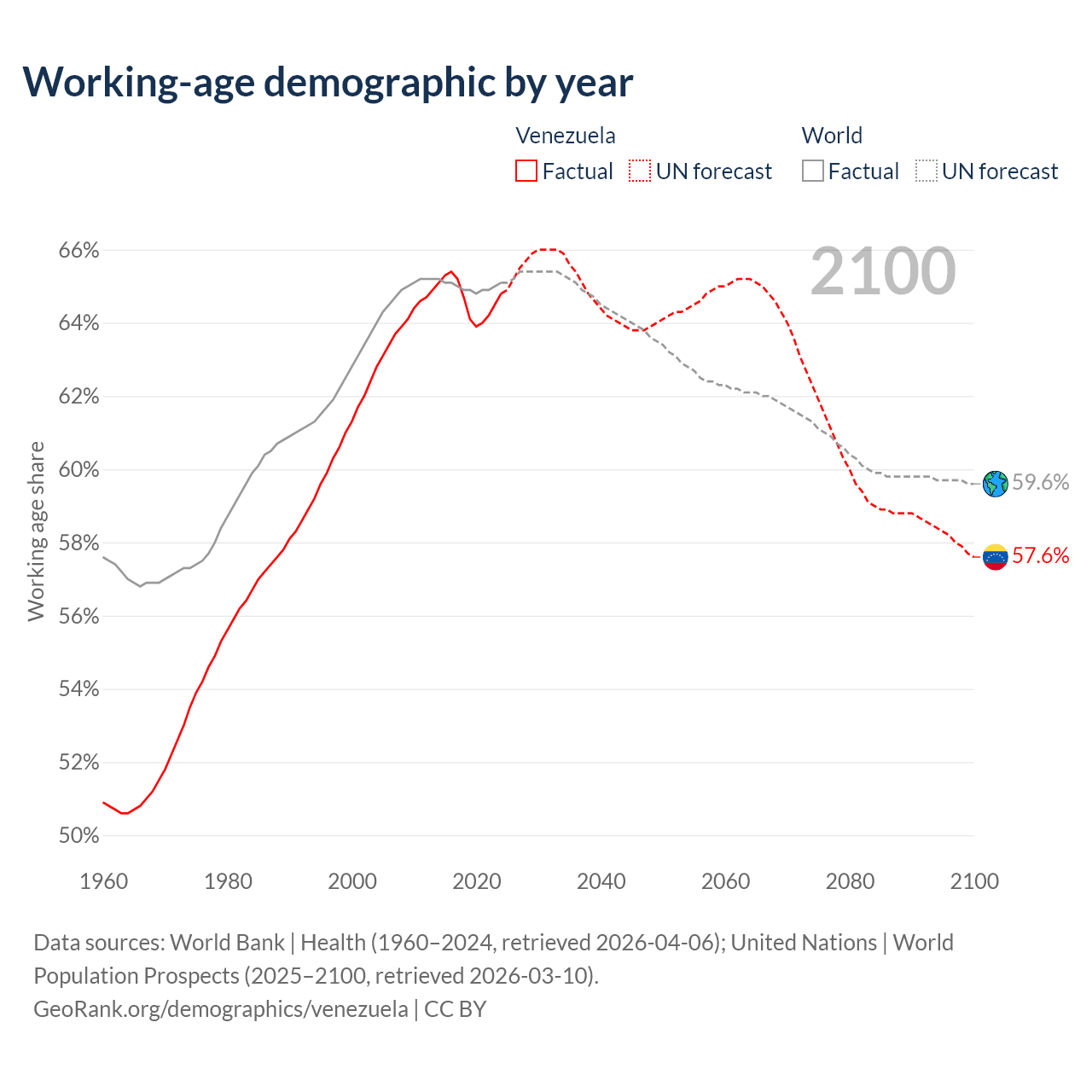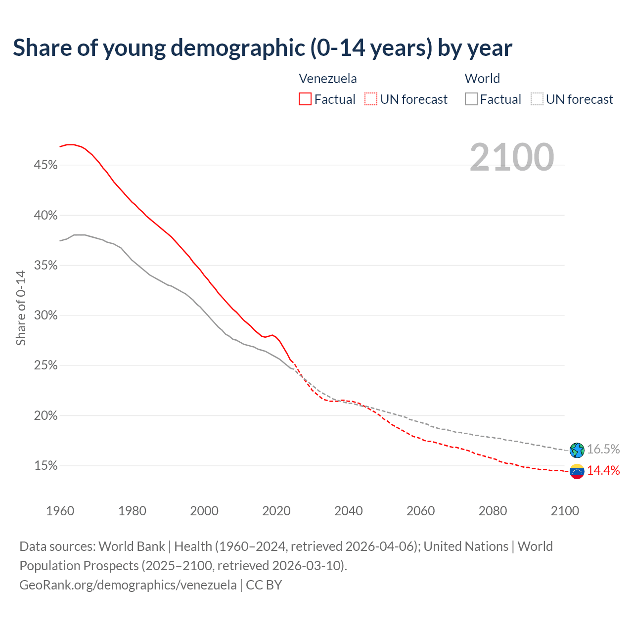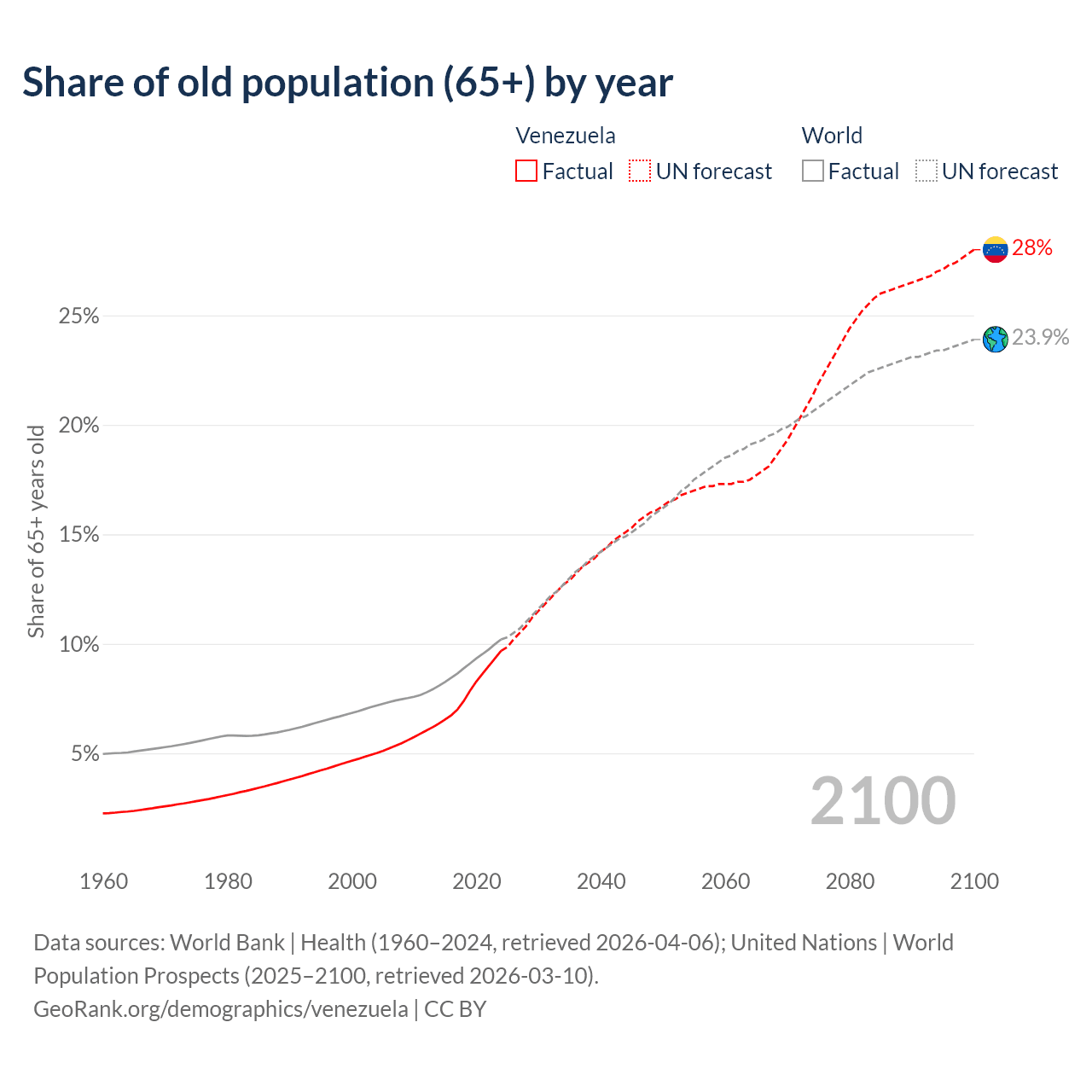 Median age in Venezuela, 1960–2100