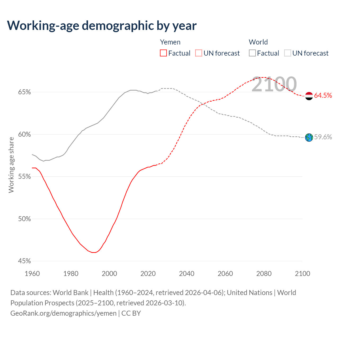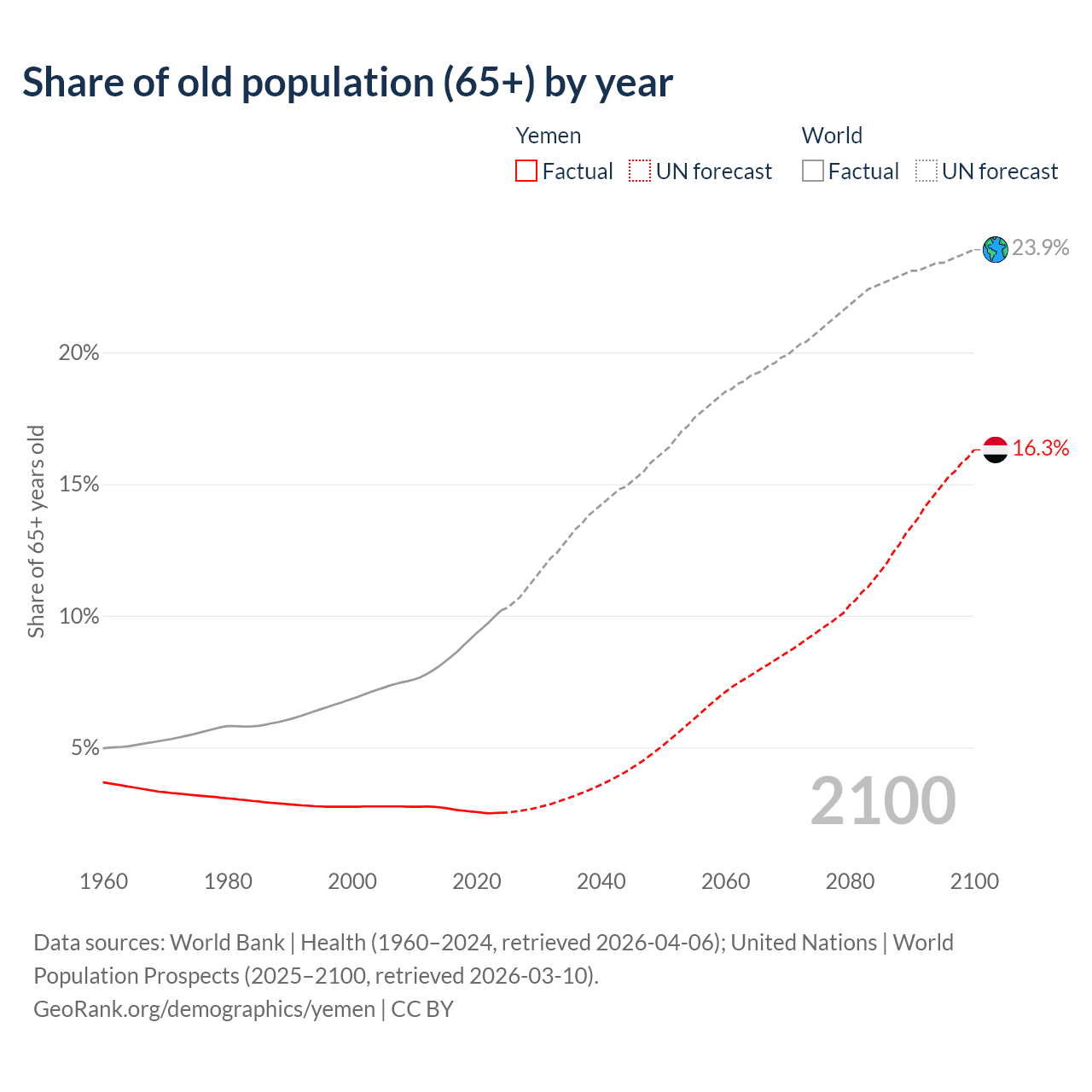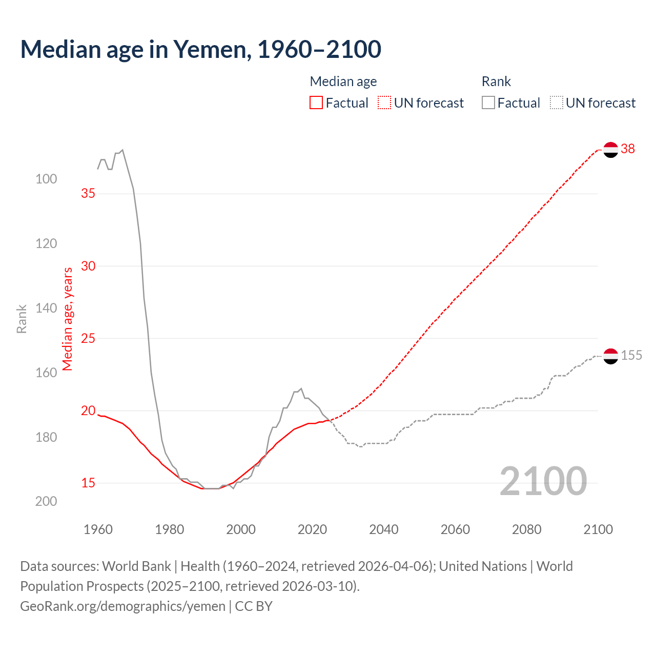 Median age in Yemen, 1960–2100