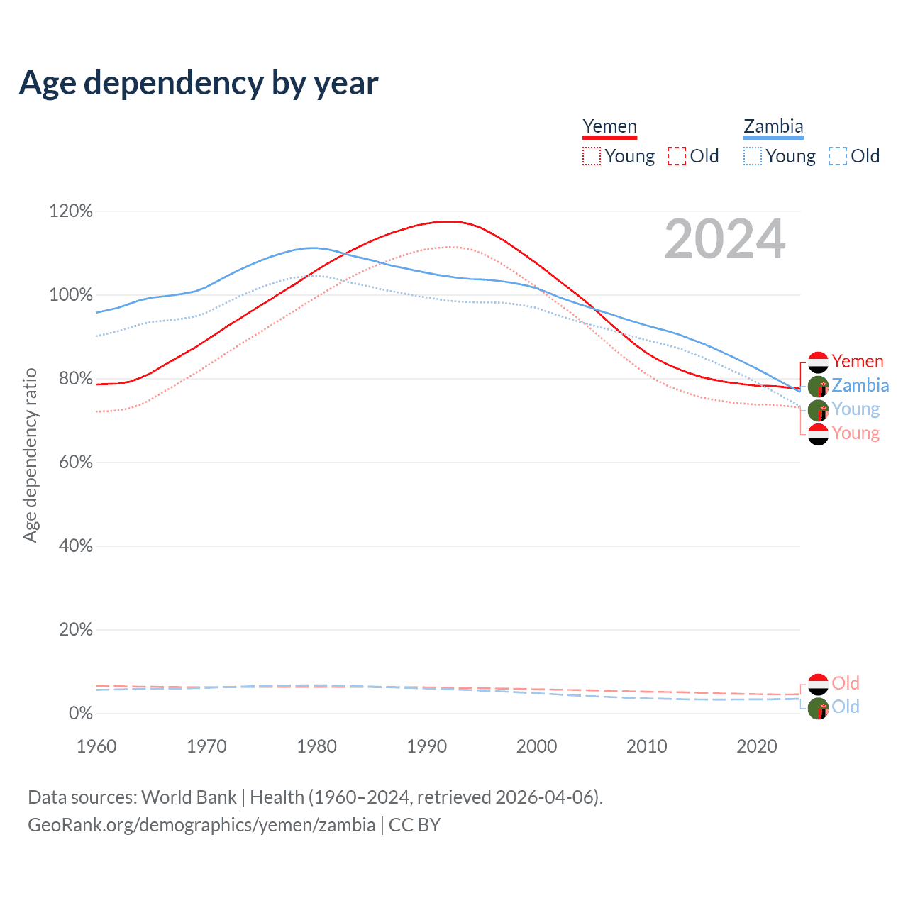 - The share of old-age demographic (65+) in Yemen is 2.52% vs 1.95% in Zambia.
