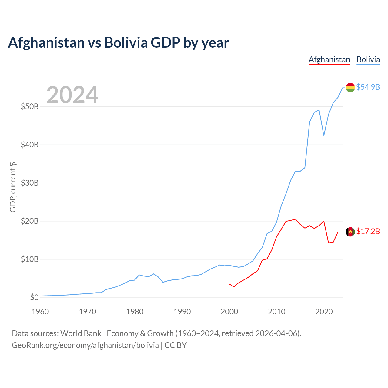 Afghanistan vs Bolivia GDP by year