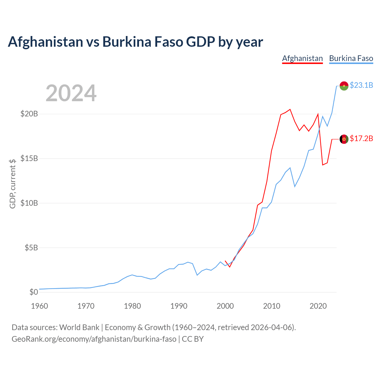 Afghanistan vs Burkina Faso GDP by year