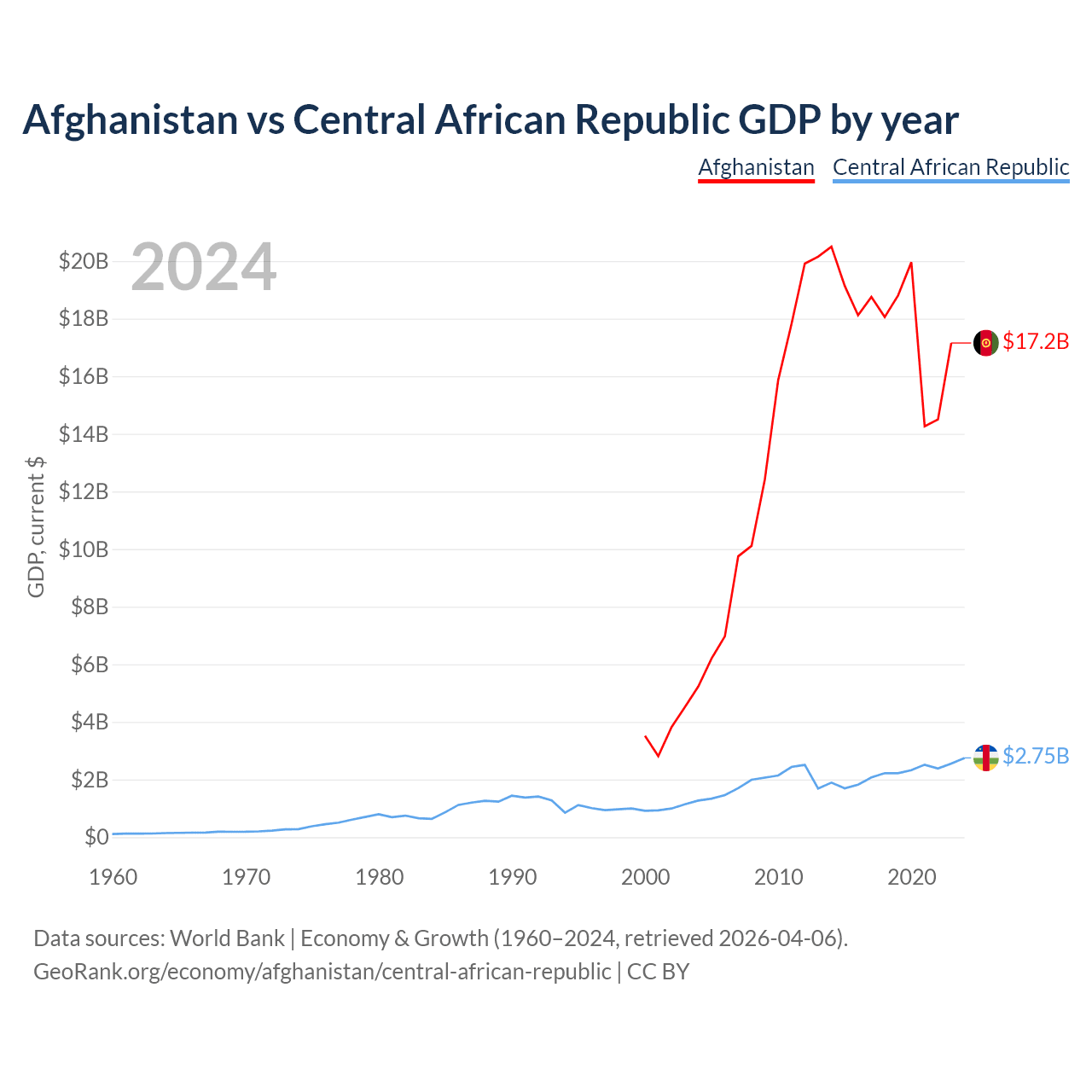 Afghanistan vs Central African Republic GDP by year