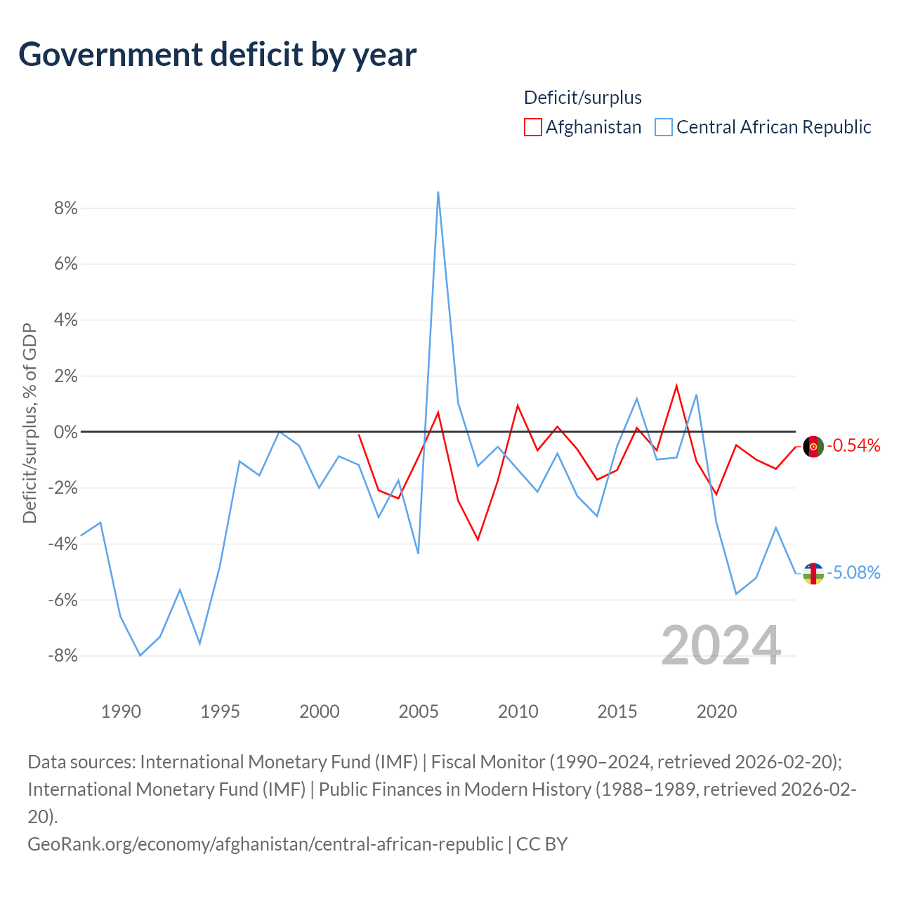 - International Monetary Fund (IMF) | Fiscal Monitor (1990–2024, retrieved 2026-02-20)