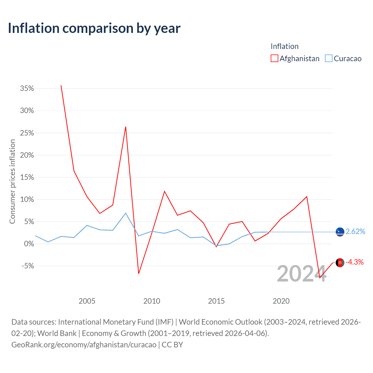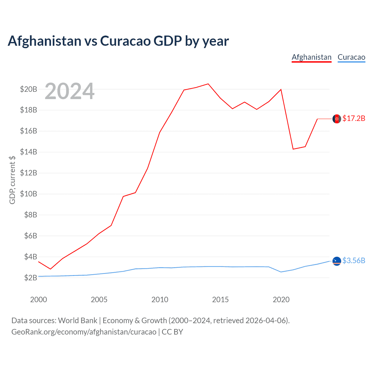 Afghanistan vs Curacao GDP by year