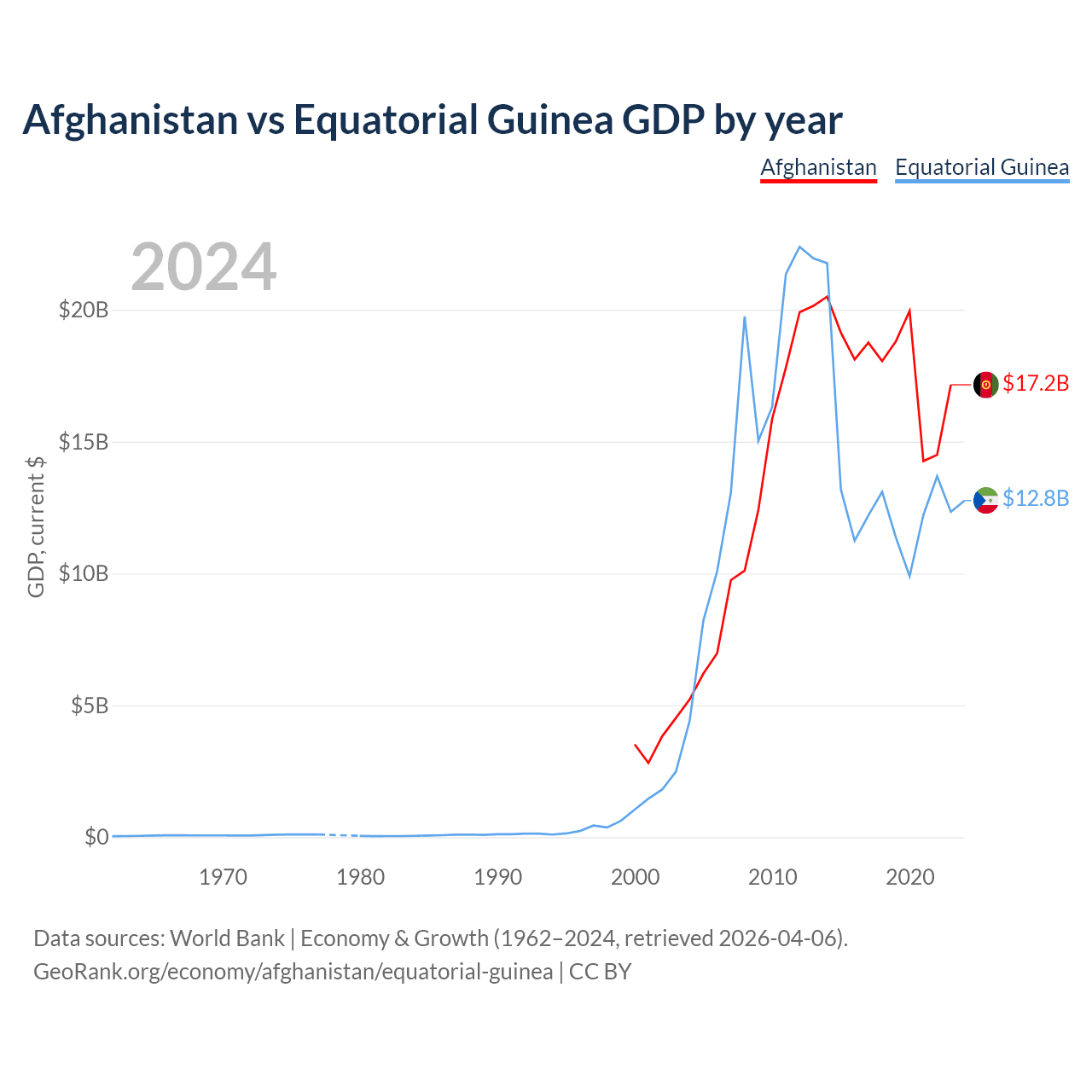 Afghanistan vs Equatorial Guinea GDP by year