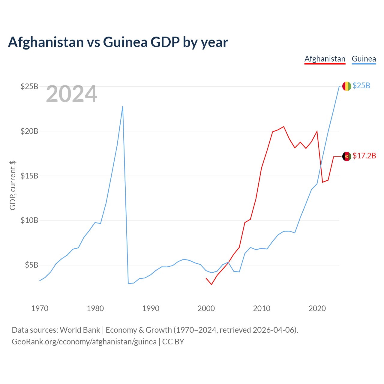 Afghanistan vs Guinea GDP by year