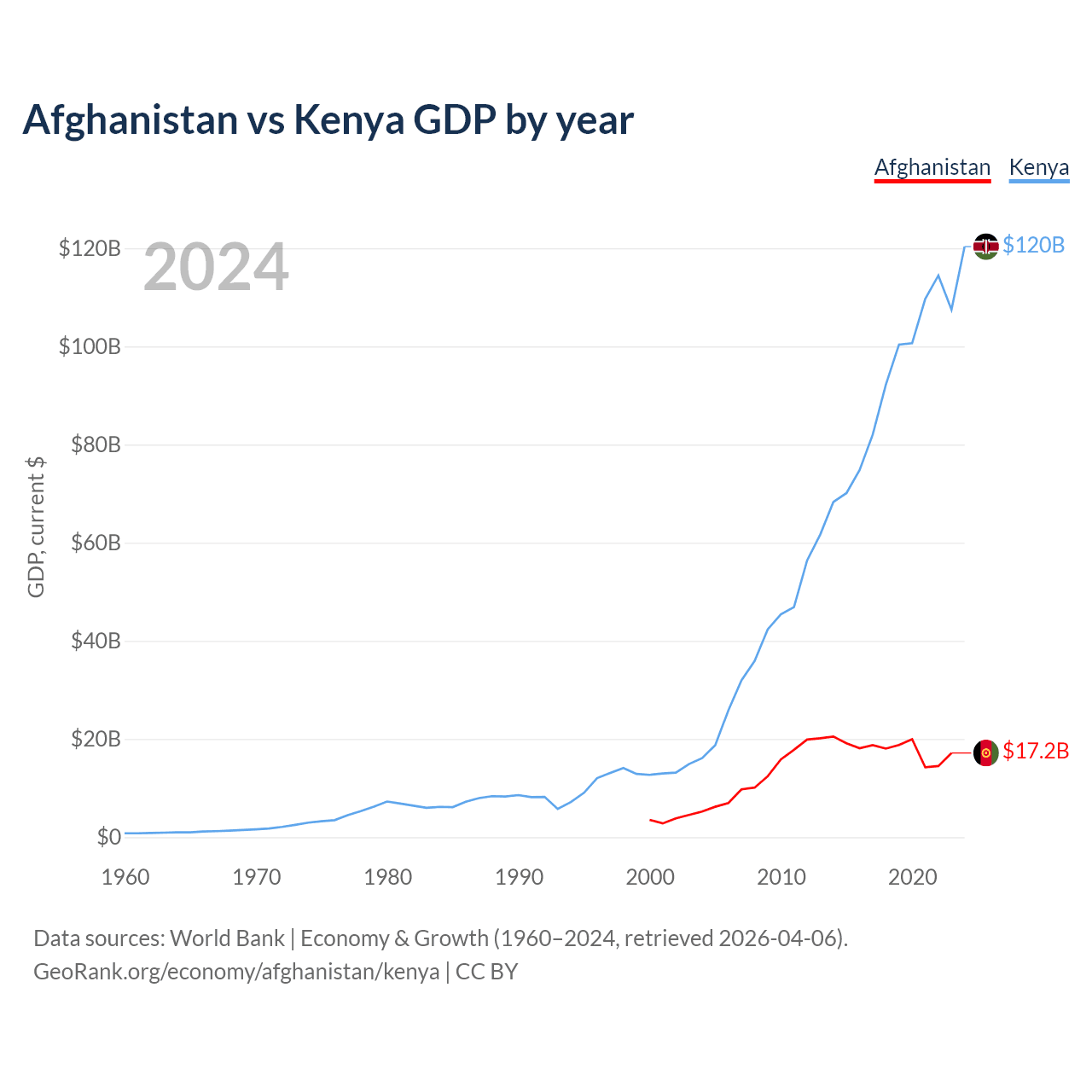 Afghanistan vs Kenya GDP by year