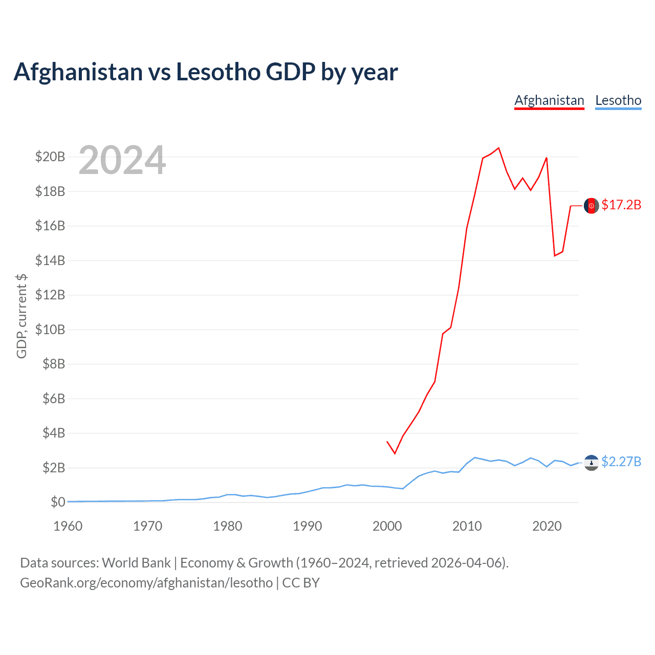 Afghanistan vs Lesotho GDP by year