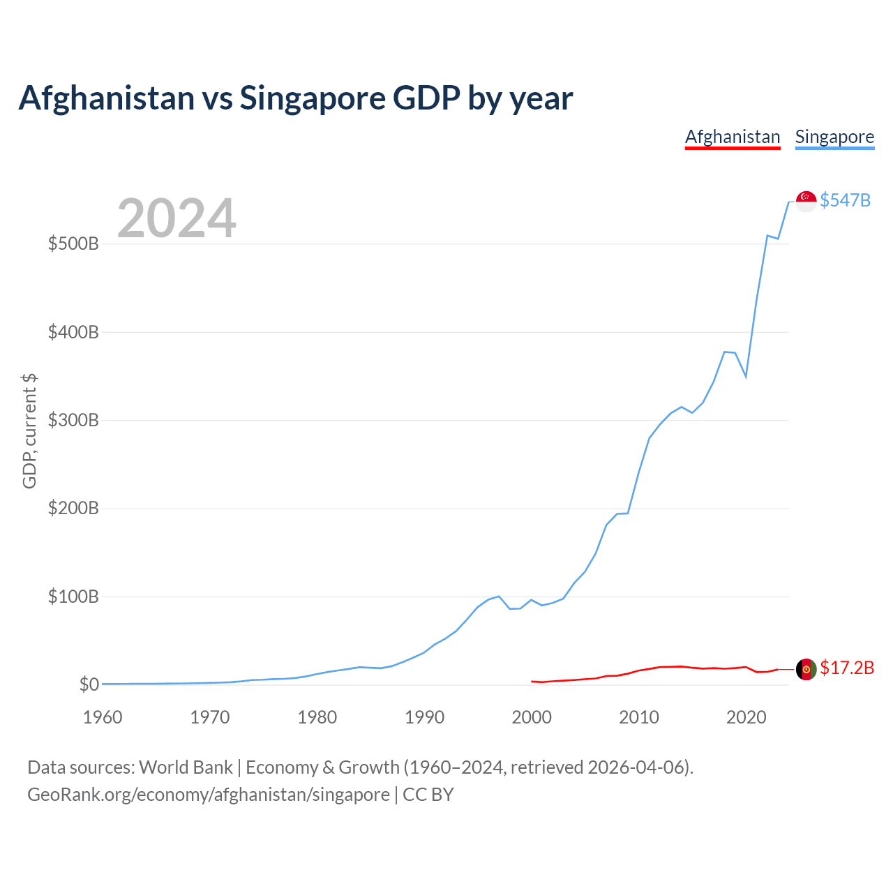 Afghanistan vs Singapore GDP by year