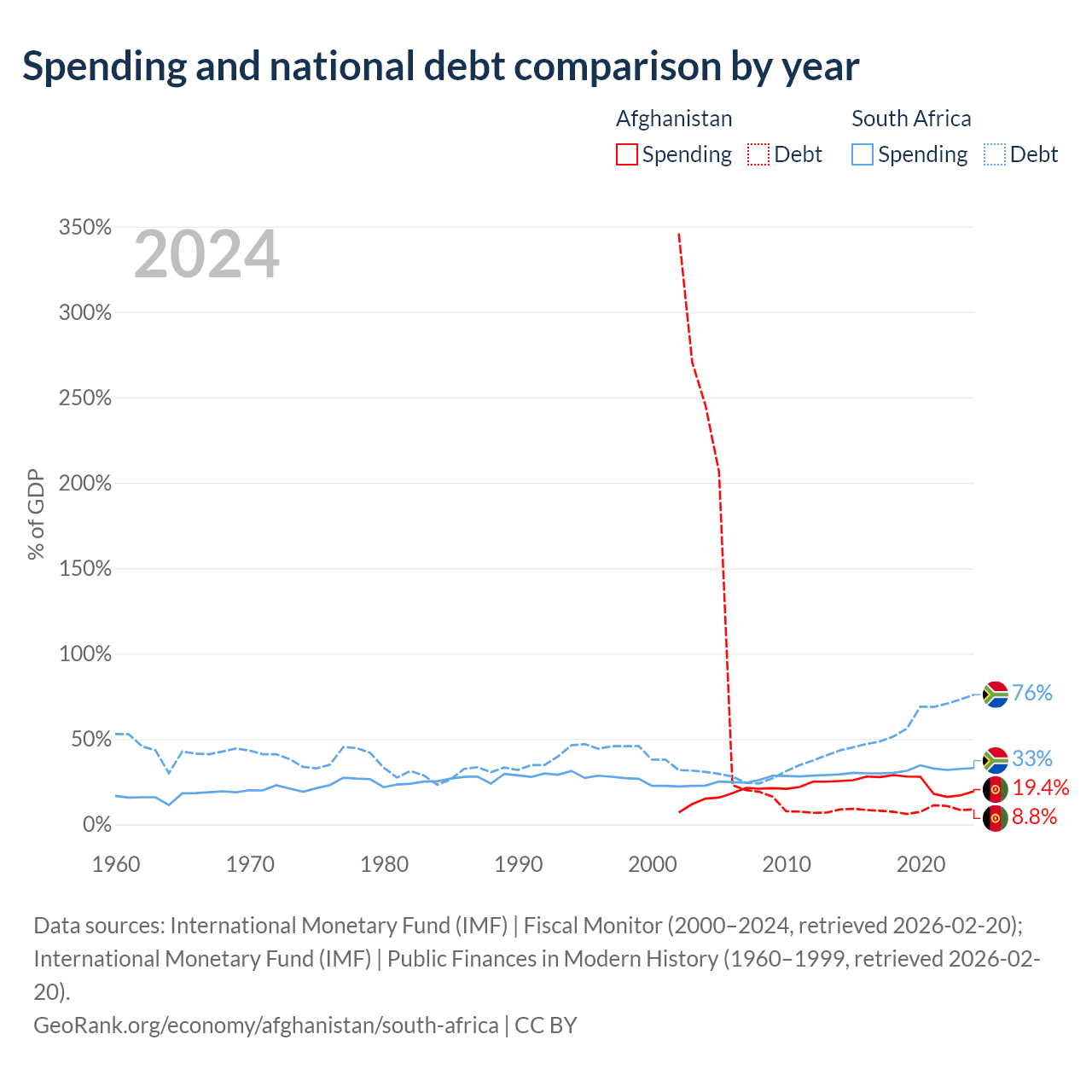 Afghanistan has $1.44B in government debt (8.8% of GDP), compared to $305B (76% of GDP) in South Africa.