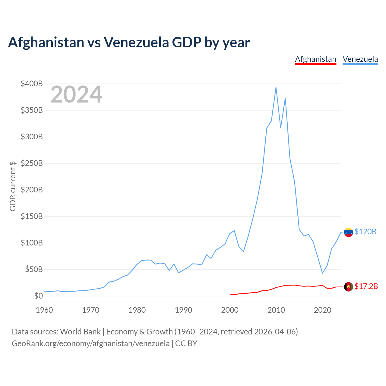 Afghanistan vs Venezuela GDP by year