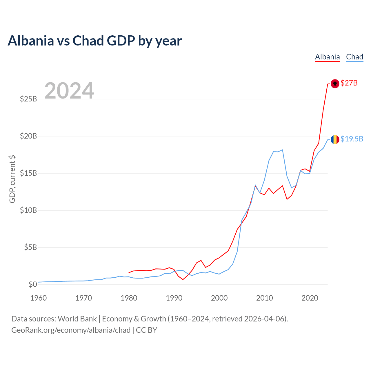 Albania vs Chad GDP by year