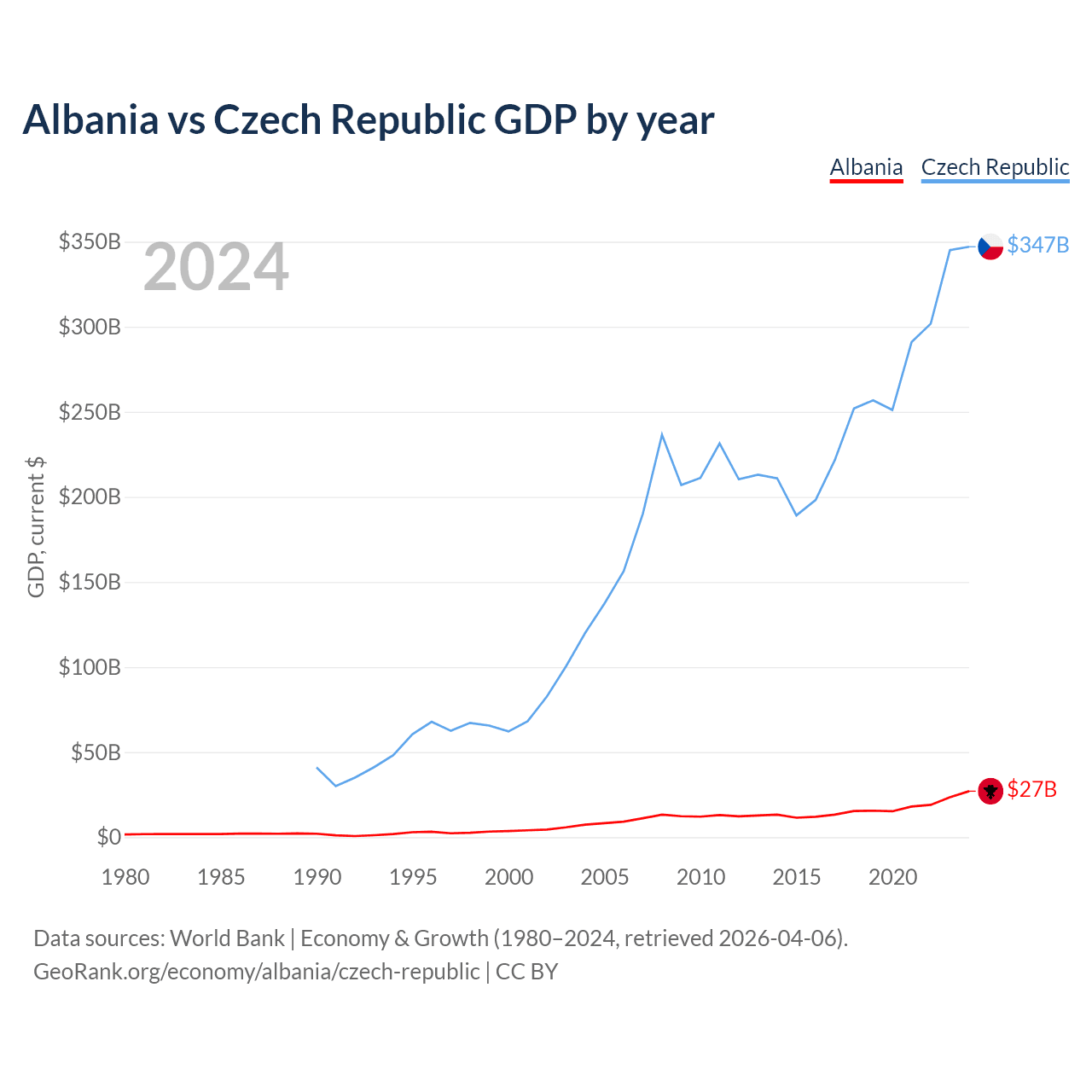 Albania vs Czech Republic GDP by year