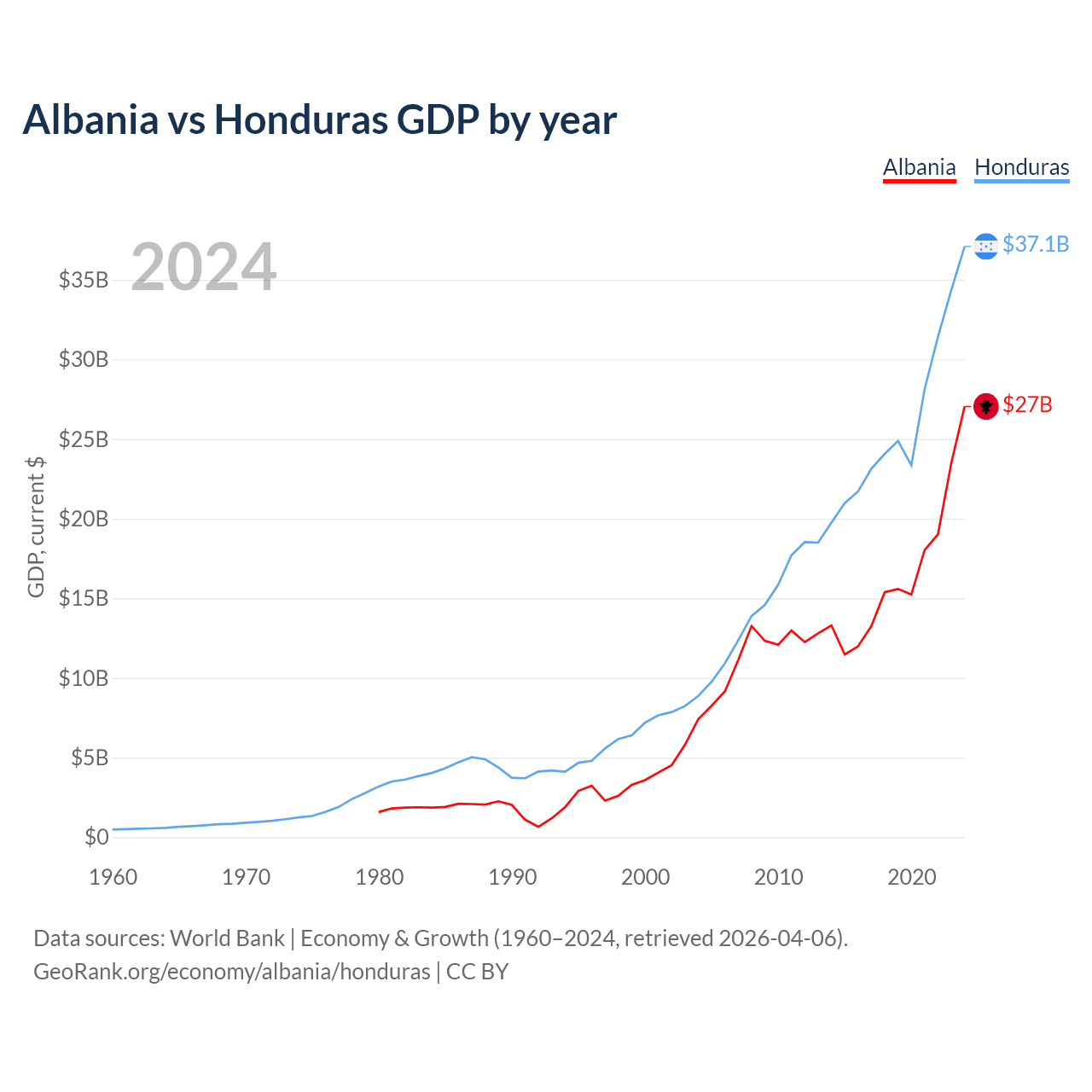 Albania vs Honduras GDP by year