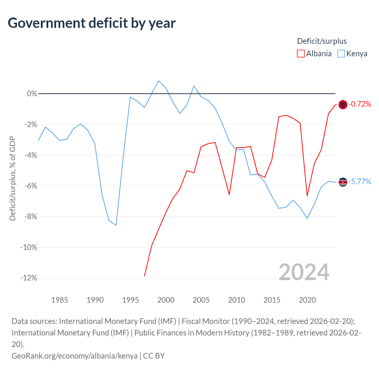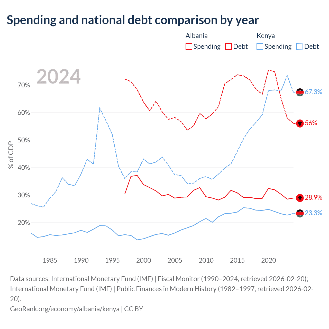 Albania has $15.2B in government debt (56% of GDP), compared to $81B (67.3% of GDP) in Kenya.