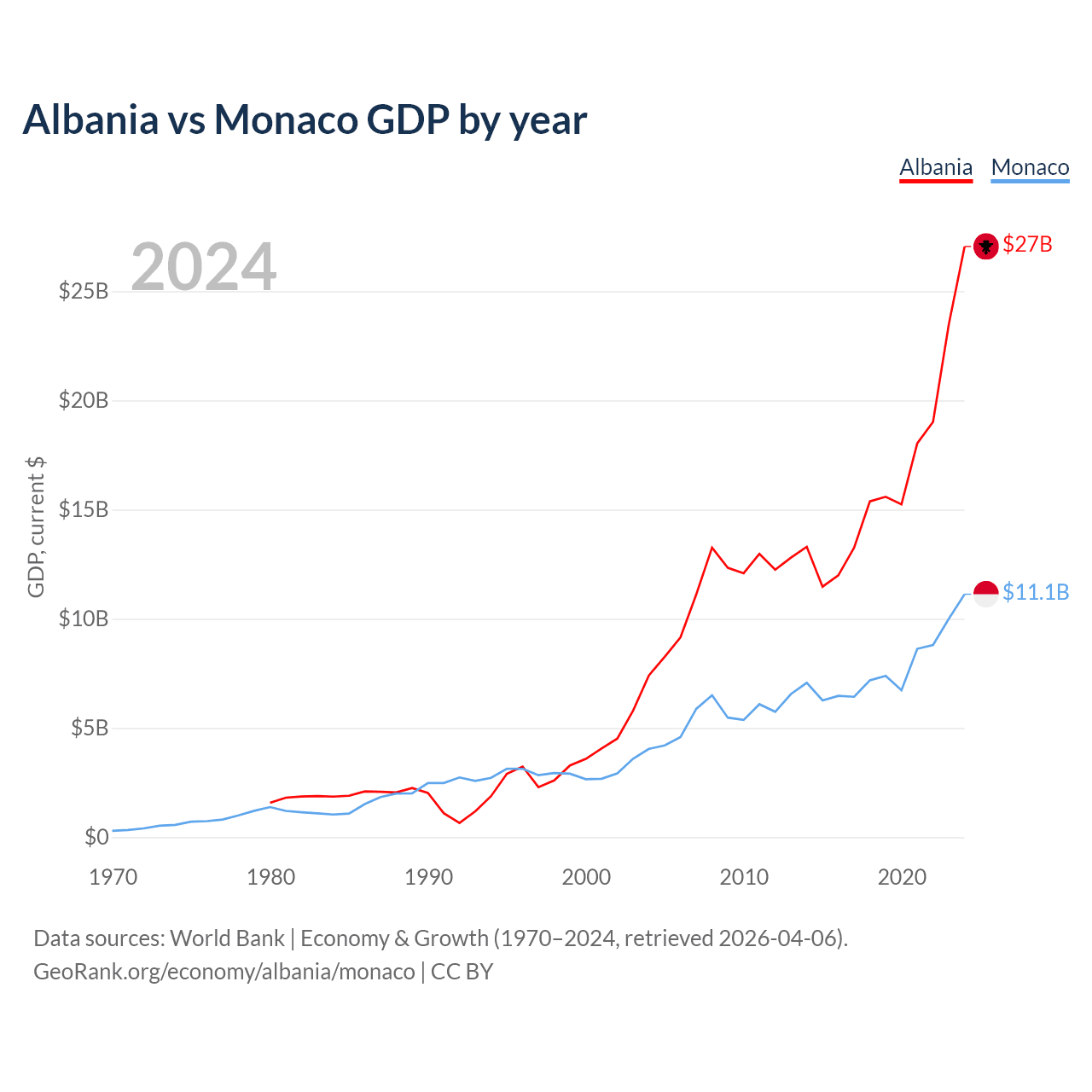 Albania vs Monaco GDP by year