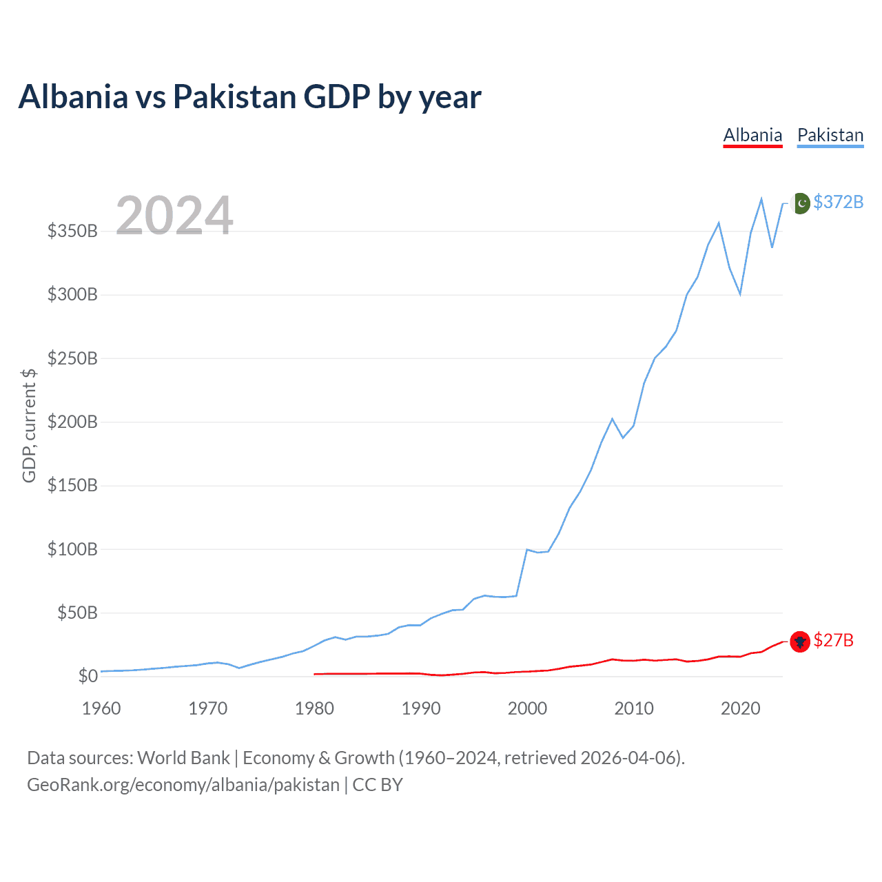 Albania vs Pakistan GDP by year