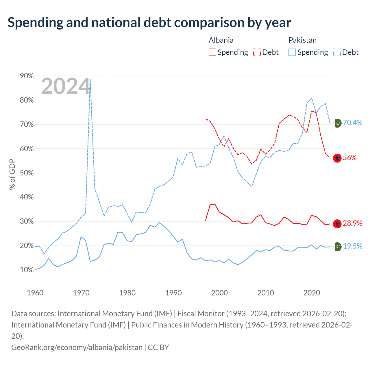 Albania has $15.2B in government debt (56% of GDP), compared to $262B (70.4% of GDP) in Pakistan.