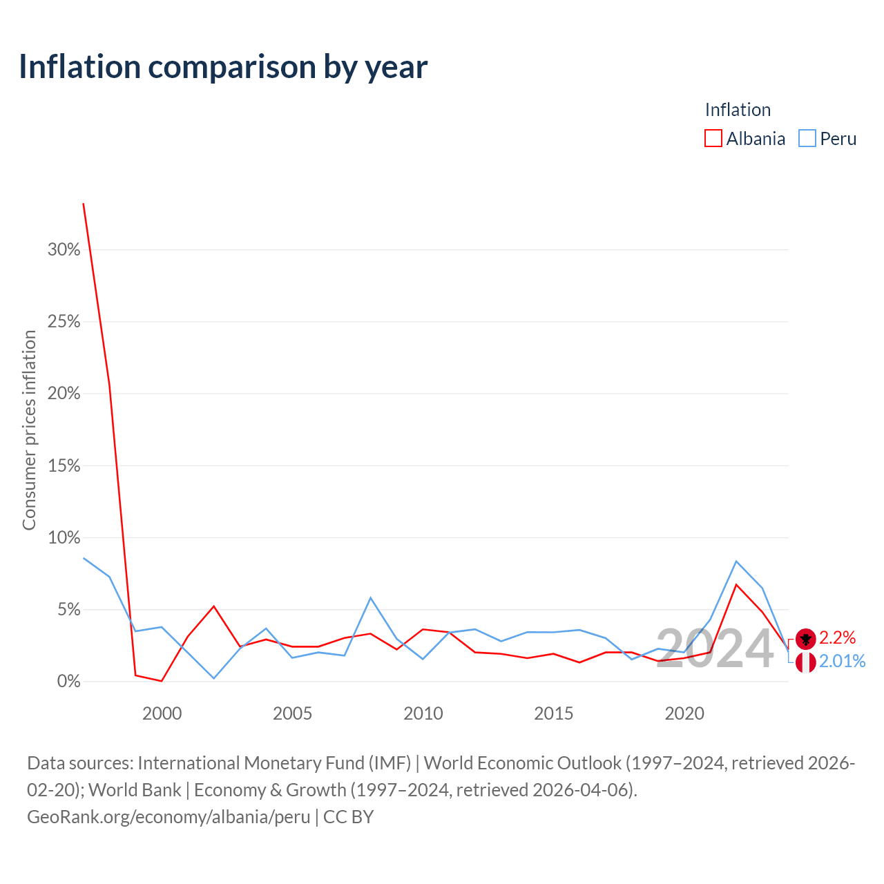 Albania vs Peru GDP by year