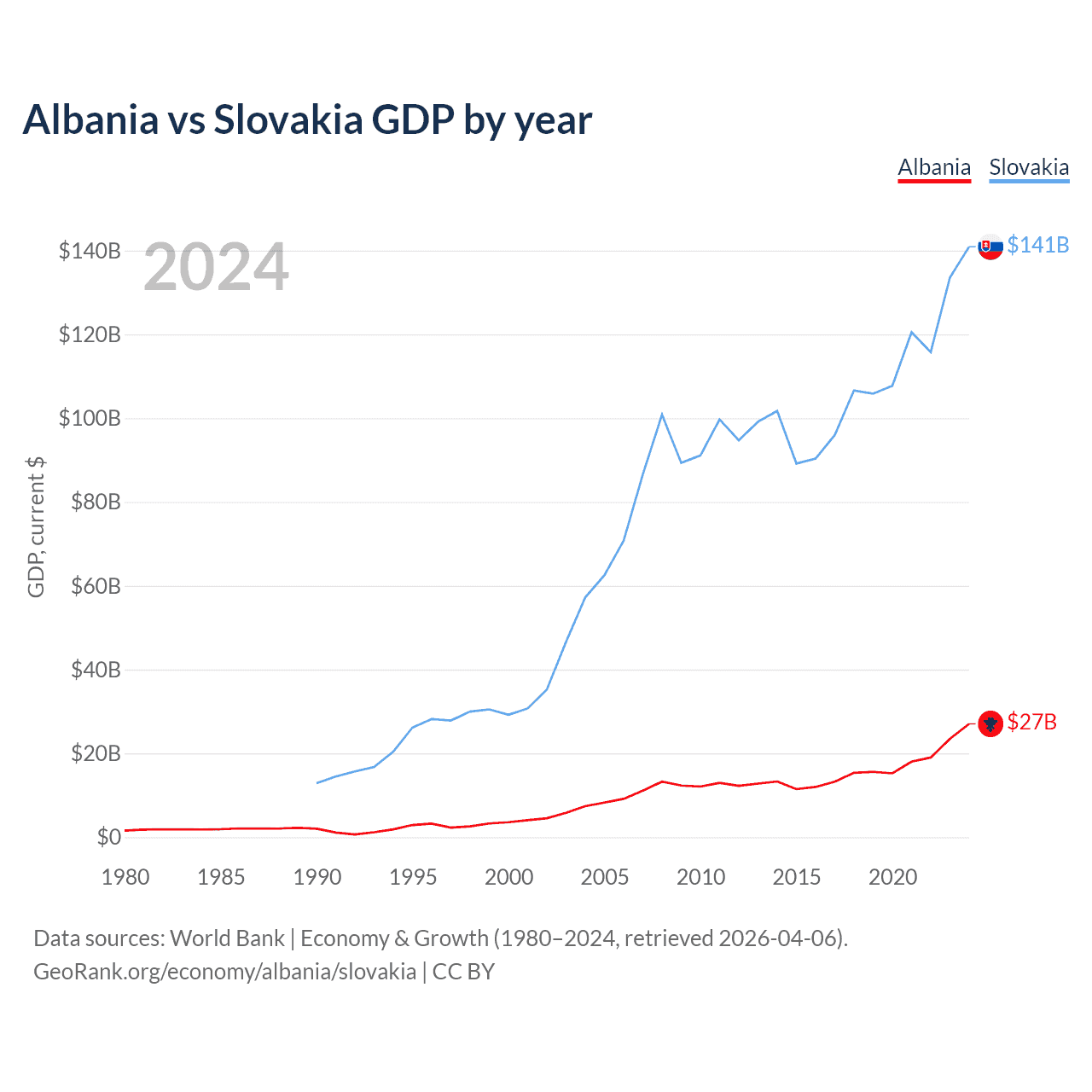 Albania vs Slovakia GDP by year