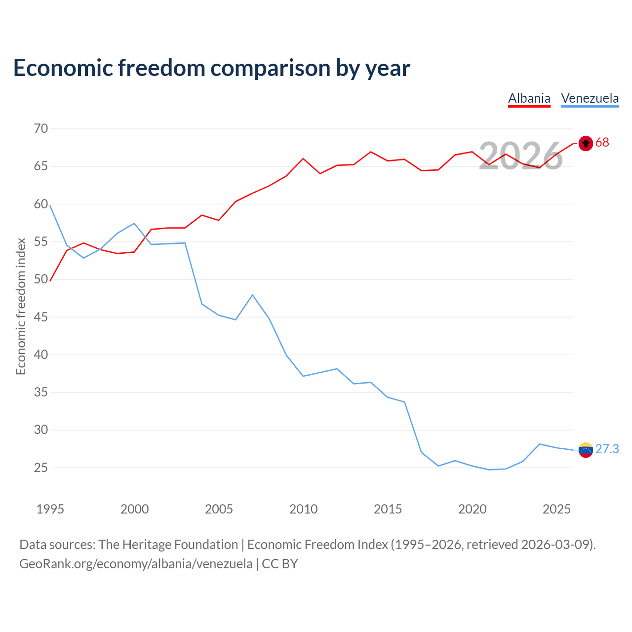 Data sources: The Heritage Foundation | Economic Freedom Index (1995–2026, retrieved 2026-03-09).