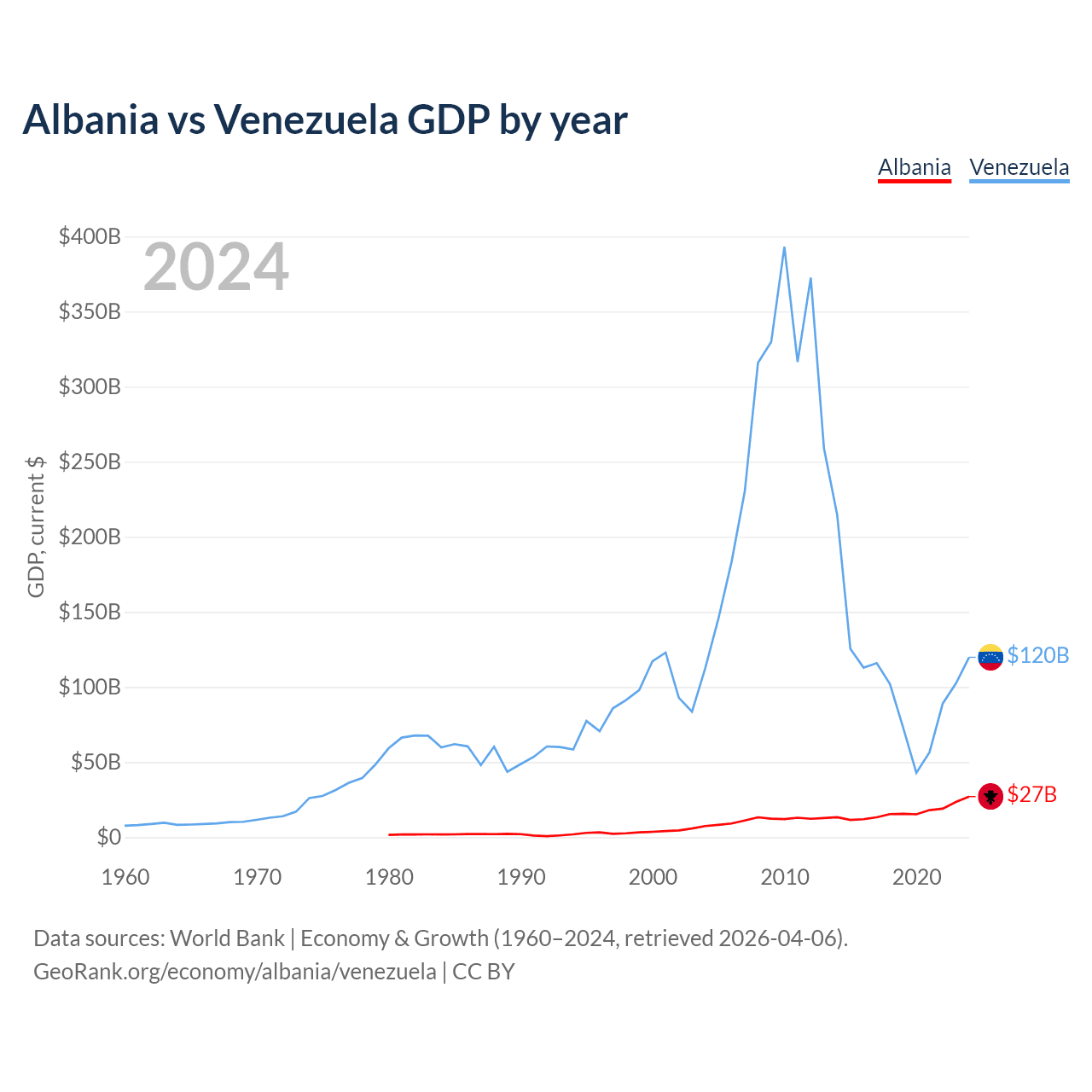 Albania vs Venezuela GDP by year