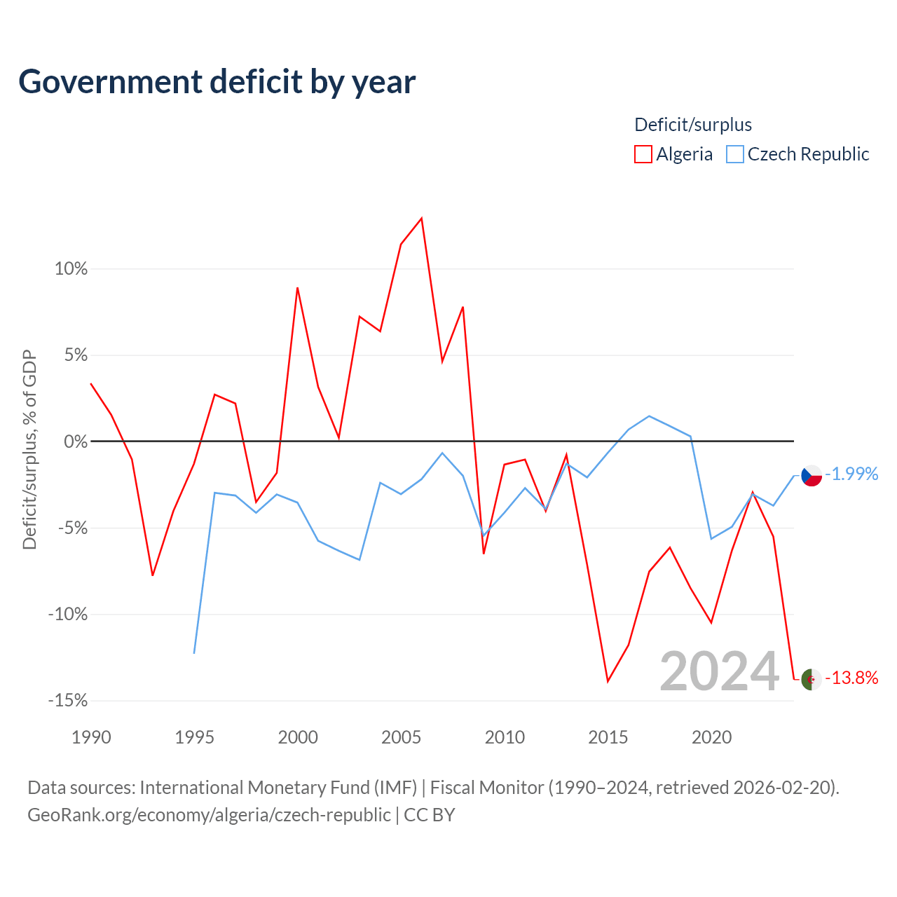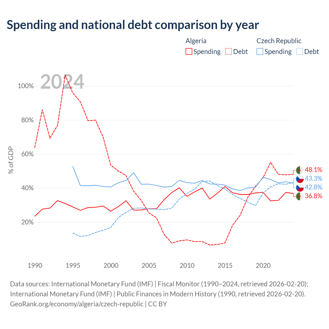Algeria has $129B in government debt (48.1% of GDP), compared to $150B (43.3% of GDP) in the Czech Republic.