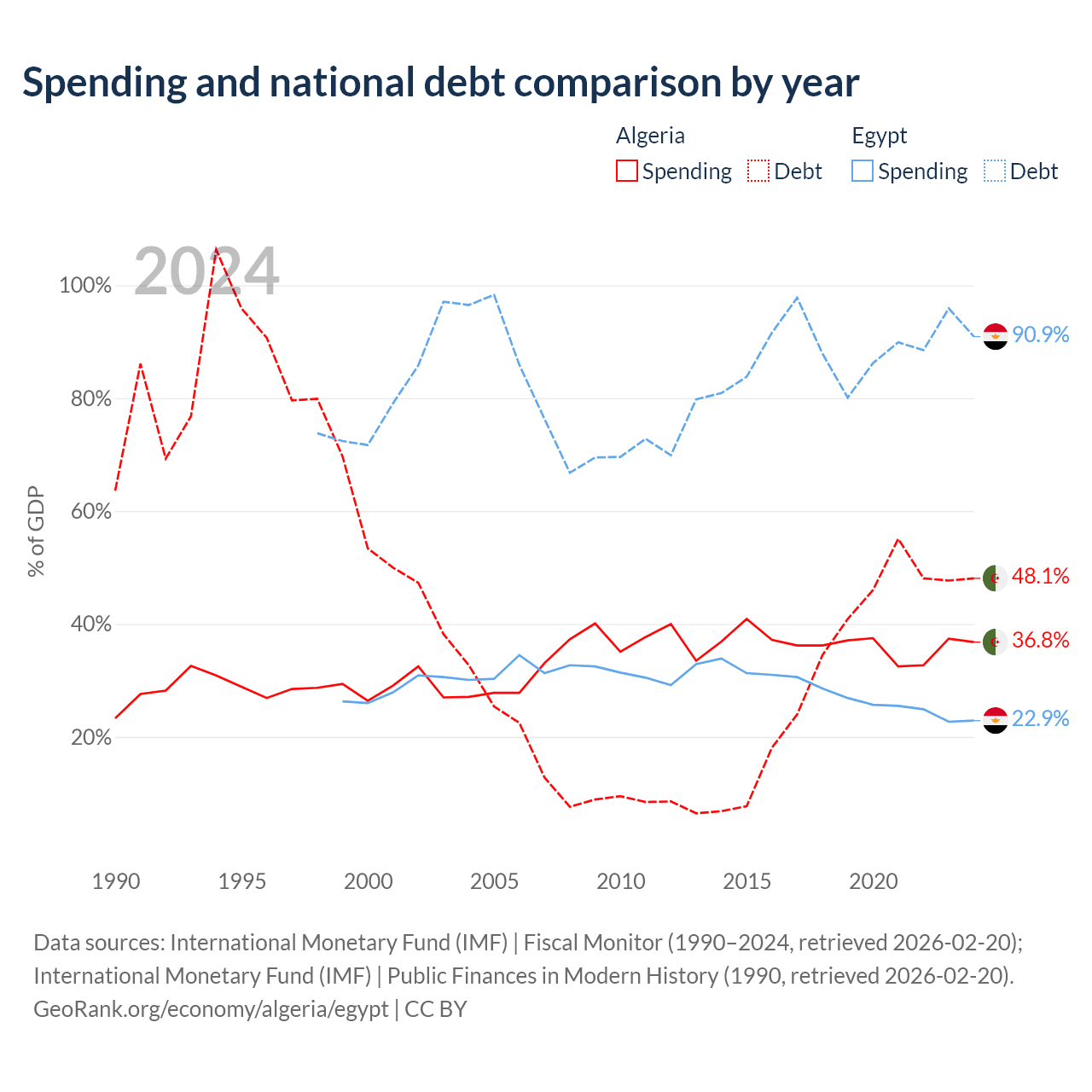 - International Monetary Fund (IMF) | Fiscal Monitor (1990–2024, retrieved 2026-02-20)