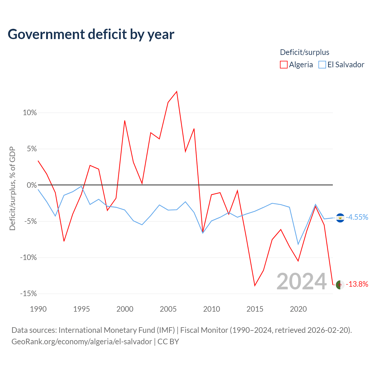 - International Monetary Fund (IMF) | Fiscal Monitor (1990–2024, retrieved 2026-02-20)