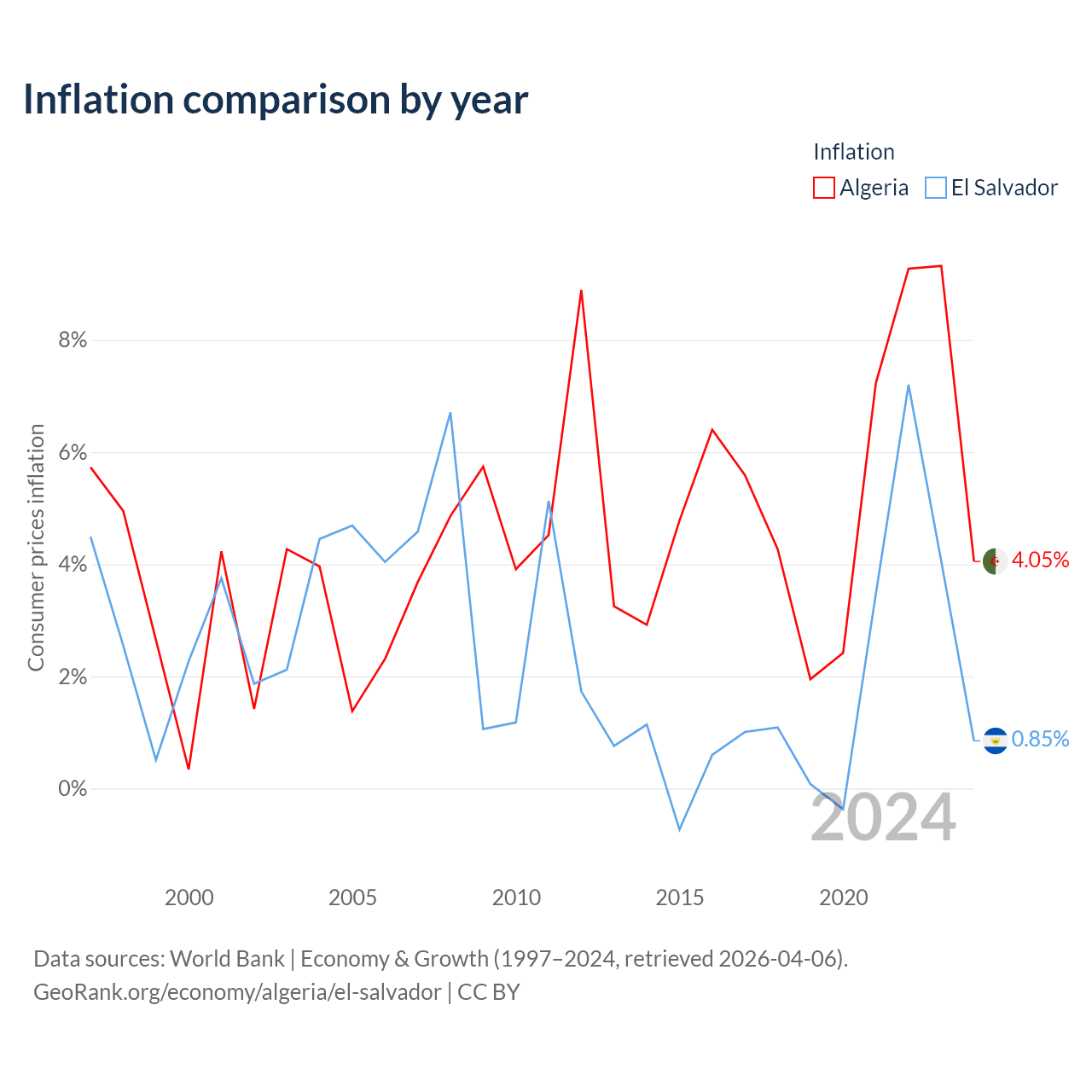 Data sources: World Bank | Economy & Growth (1960–2024, retrieved 2026-04-06).