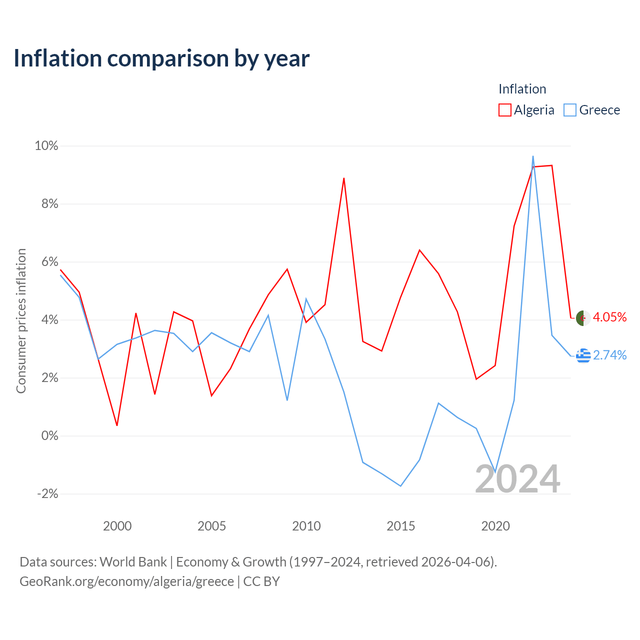 Data sources: World Bank | Economy & Growth (1960–2024, retrieved 2026-04-06).