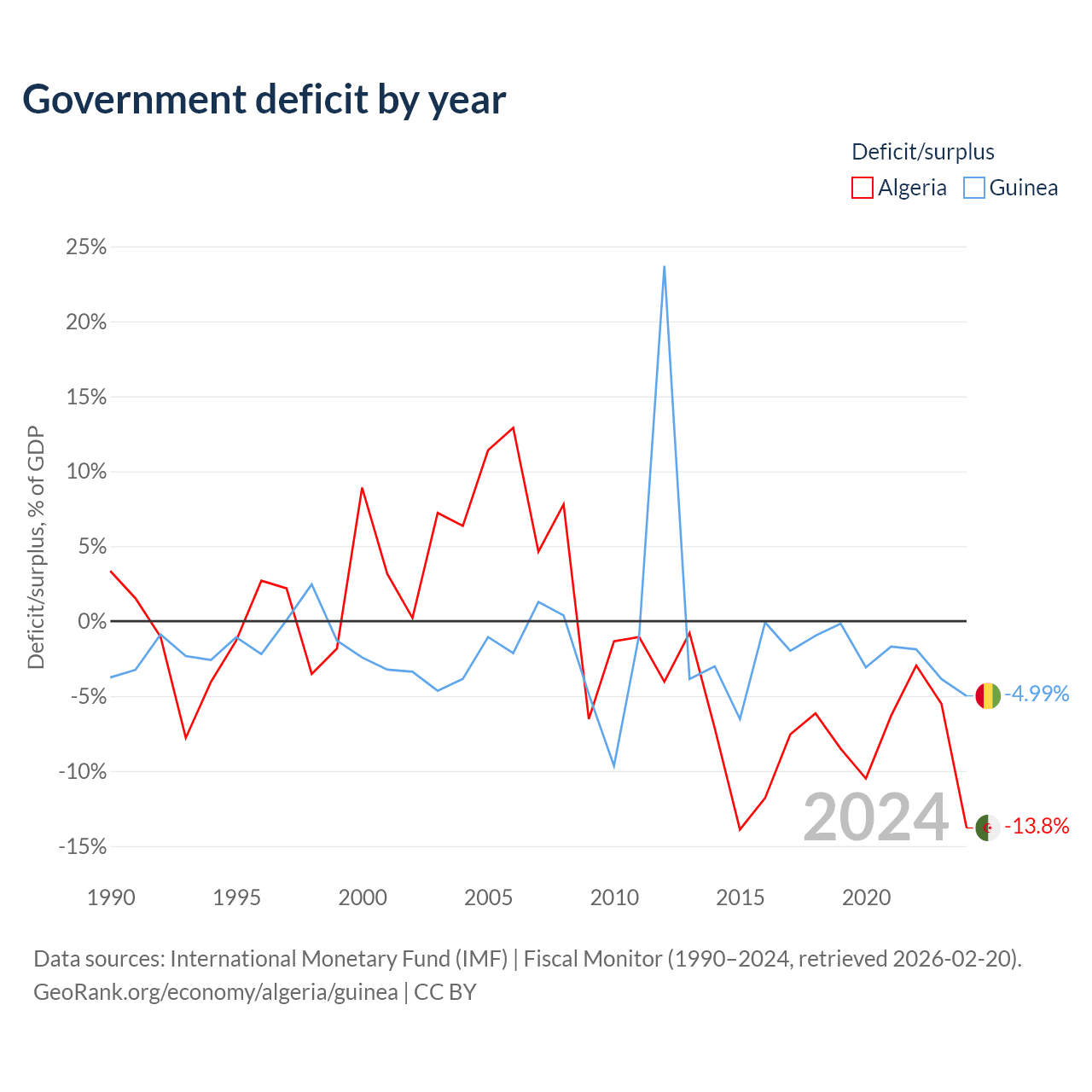 - International Monetary Fund (IMF) | Fiscal Monitor (1990–2024, retrieved 2026-02-20)