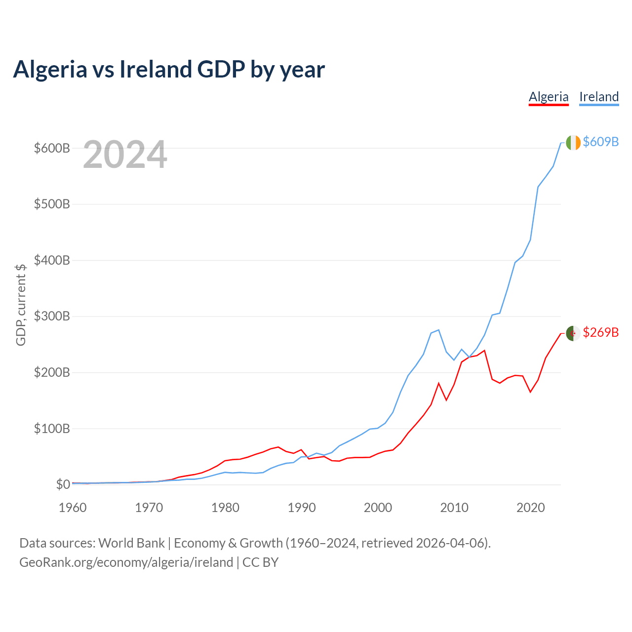 Algeria vs Ireland GDP by year