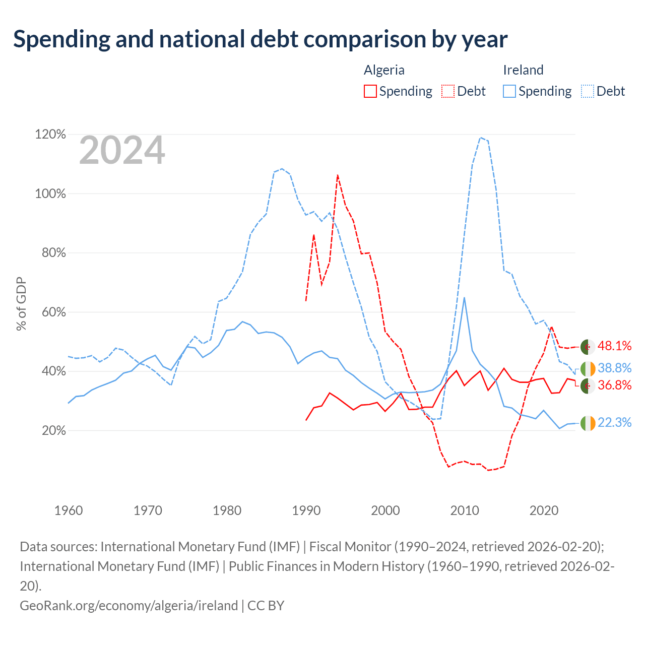 Algeria has $129B in government debt (48.1% of GDP), compared to $236B (38.8% of GDP) in Ireland.