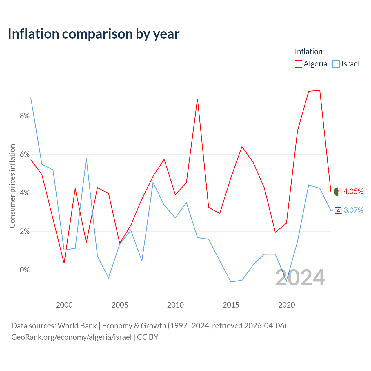 Data sources: World Bank | Economy & Growth (1960–2024, retrieved 2026-04-06).