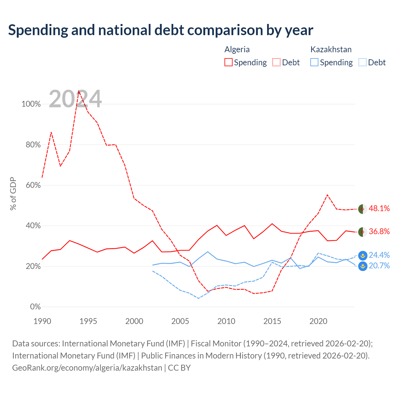 - International Monetary Fund (IMF) | Fiscal Monitor (1990–2024, retrieved 2026-02-20)