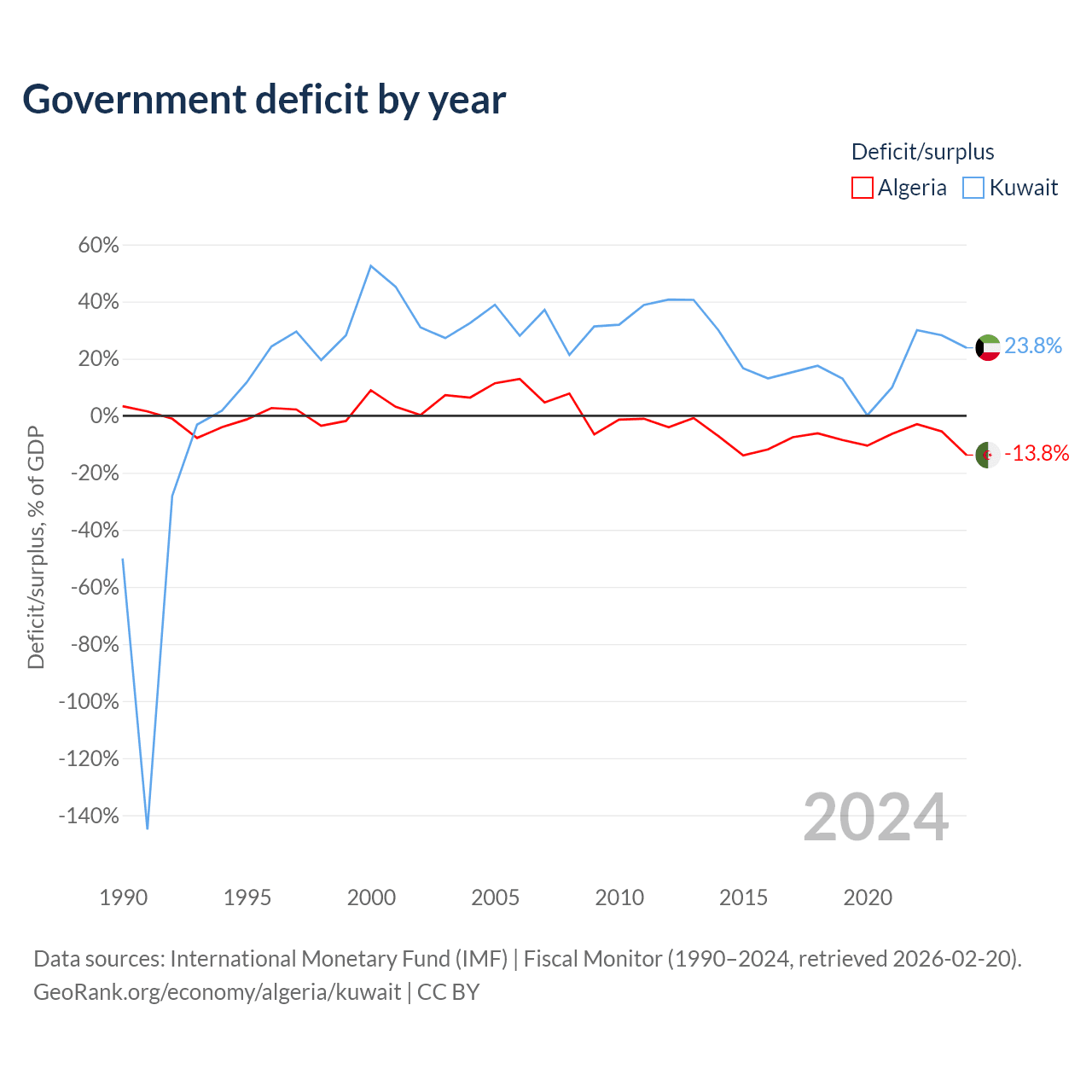 - International Monetary Fund (IMF) | Fiscal Monitor (1990–2024, retrieved 2026-02-20)