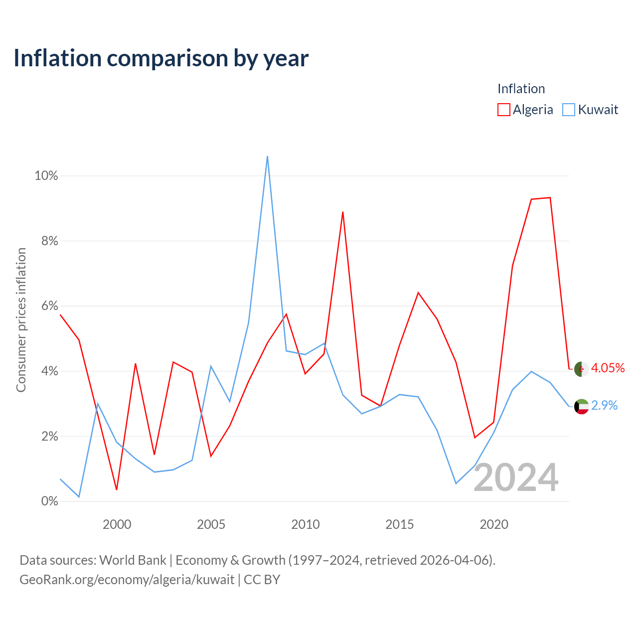 Data sources: World Bank | Economy & Growth (1960–2024, retrieved 2026-04-06).