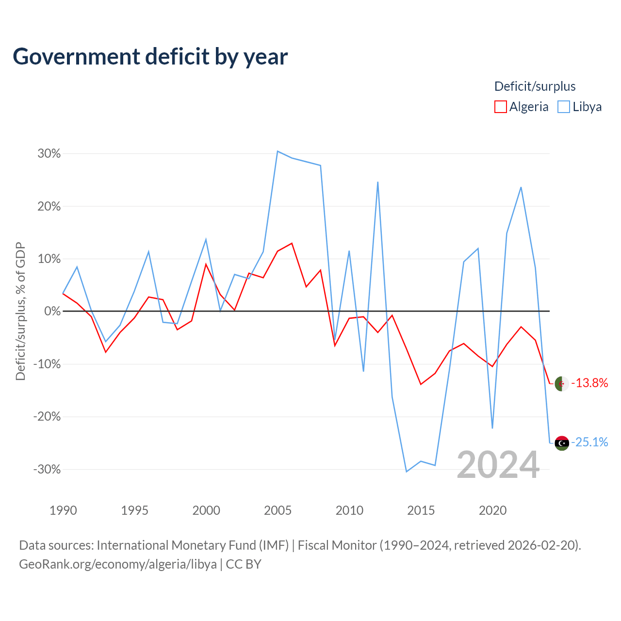 - International Monetary Fund (IMF) | Fiscal Monitor (1990–2024, retrieved 2026-02-20)
