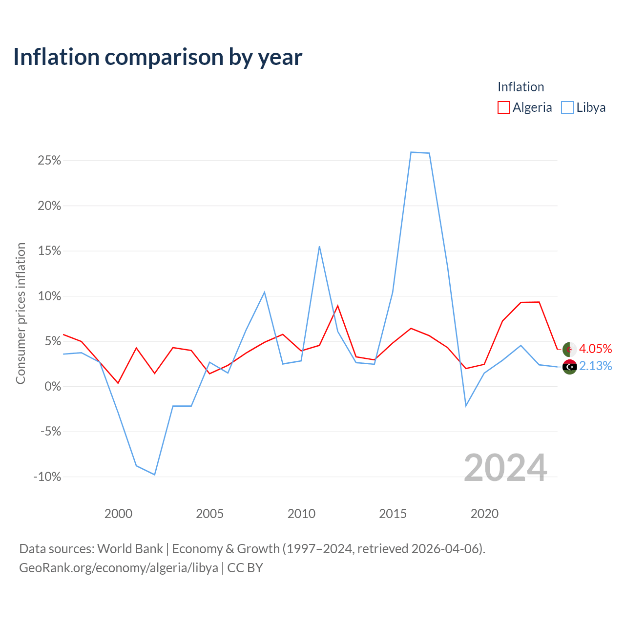 Data sources: World Bank | Economy & Growth (1960–2024, retrieved 2026-04-06).