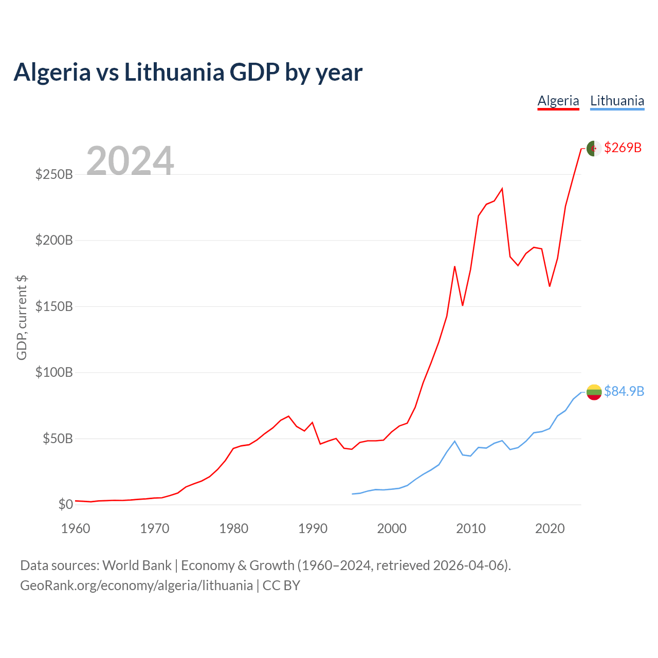 Algeria vs Lithuania GDP by year