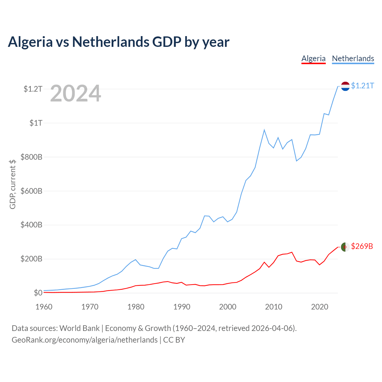 Algeria vs Netherlands GDP by year