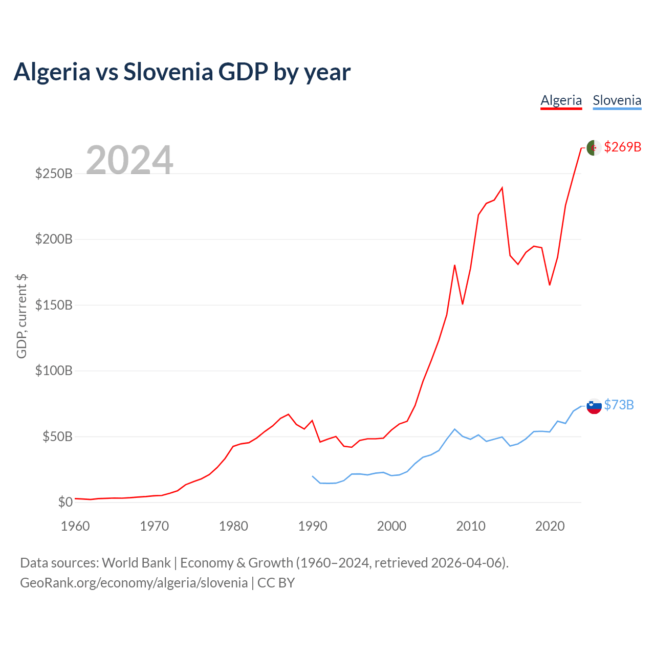Algeria vs Slovenia GDP by year